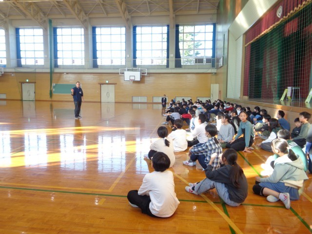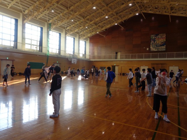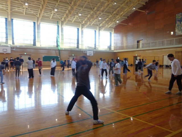 6年生の体育科の学習の様子です。チャレンジ陸上記録会に向けて、スタートダッシュの練習と投げるときの体の使い方の練習をしました。