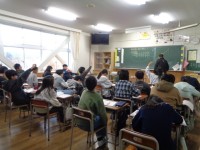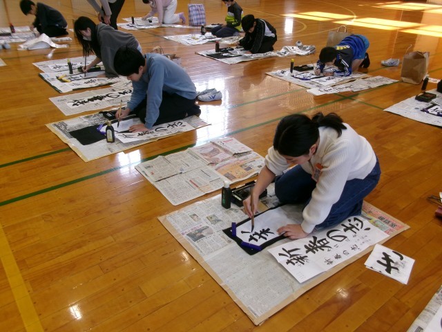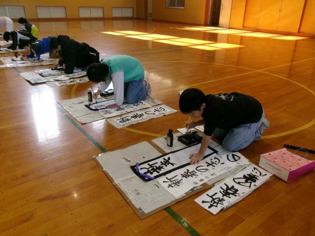 3組の書き初め教室の様子です。大石先生から教えていただいたことをもとにして、一画一画丁寧に、集中して筆を進めていました。