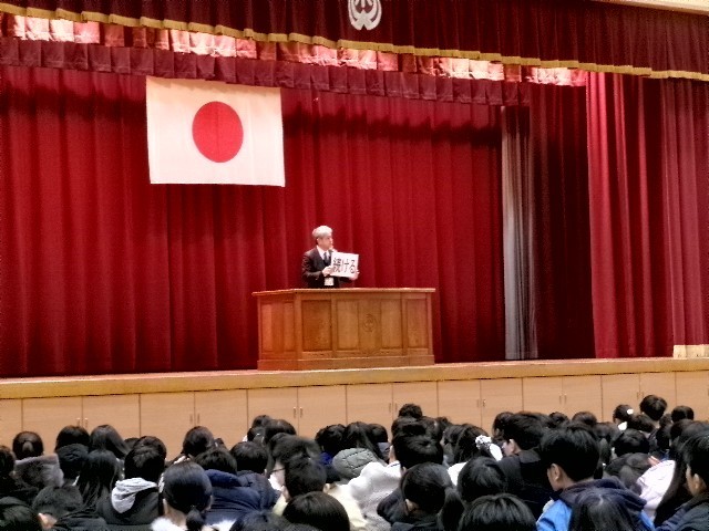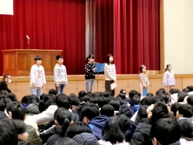 いよいよ今日から3学期がスタートしました。始業式では、各学年の代表の人たちが、3学期に頑張りたいことを発表しました。学習や運動など、更なるステップを目指、堂々と発表しました。校長先生から、「続ける」「変わる」「挑戦する」気持ちをもって行動していこうというお話があり、真剣に聞いていました。