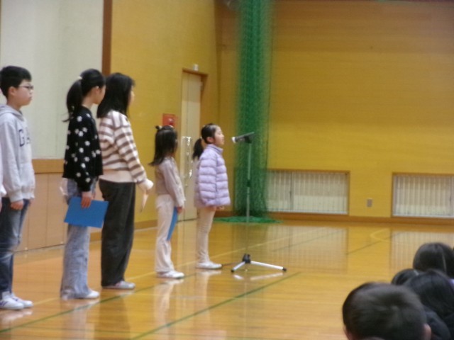 始業式では代表児童が新年頑張りたいことを話してくれました。