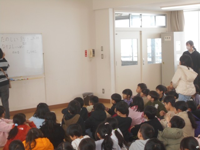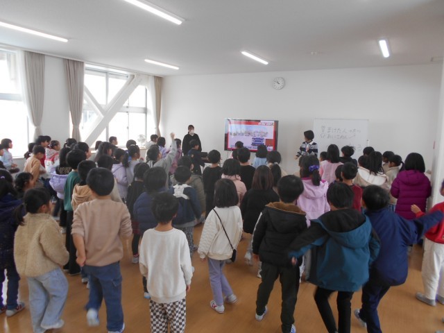 学年集会を行い、みんなとゲームをして楽しんだり、3学期の目指す姿・生活の仕方についてみんなで意見を出し合いました。