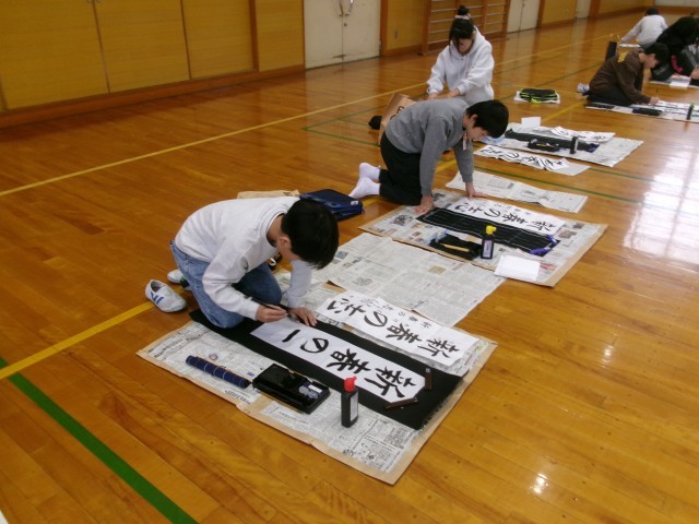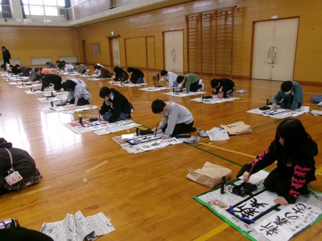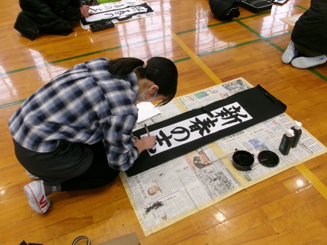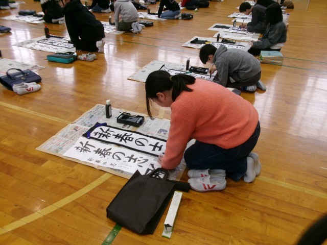 始業式の後、書き初め大会が行われました。冬休みに練習した成果を発揮しようと、一画一画集中して丁寧に書き進めていました。