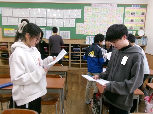 冬休みの思い出ビンゴを行いました。友達と冬休みの思い出を語り合い、盛り上がっている様子が見られました。