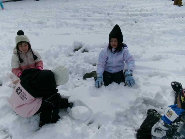 雪だるまや大きな雪玉、ソファーなど、思い思いに友達と作るのを楽しんでいました。