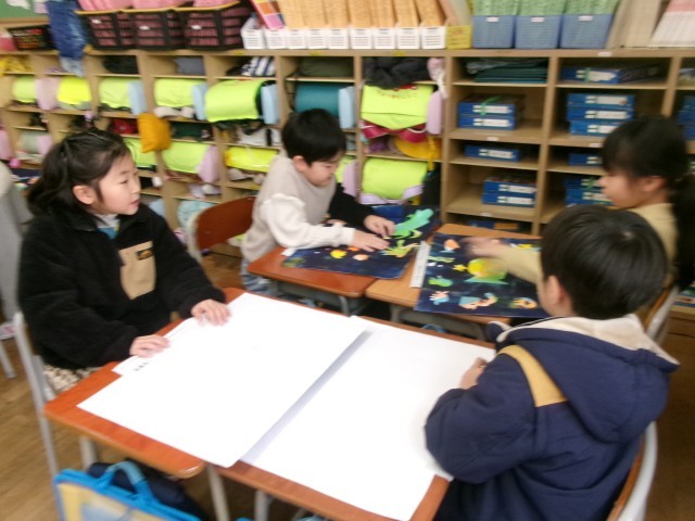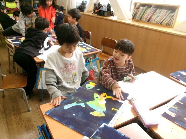 みんなで図工の作品を見合いました。