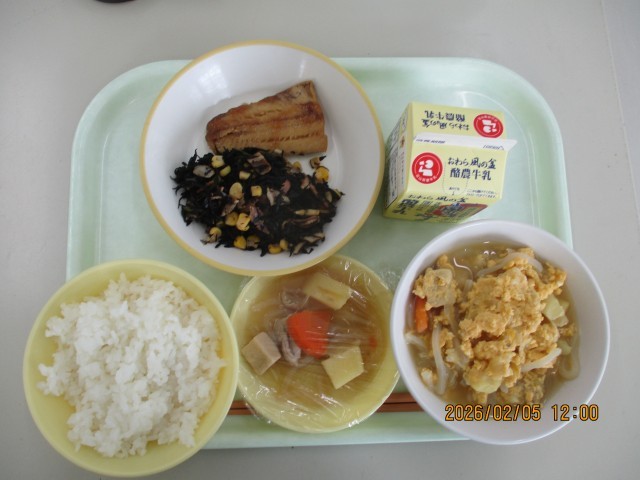 今日の献立は、ご飯  卵とじ  にしんのみぞれ煮  ひじきとコーンのソテー  牛乳  でした。