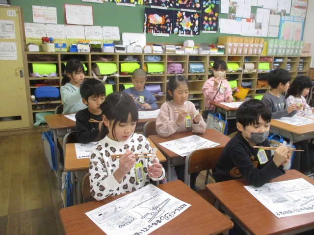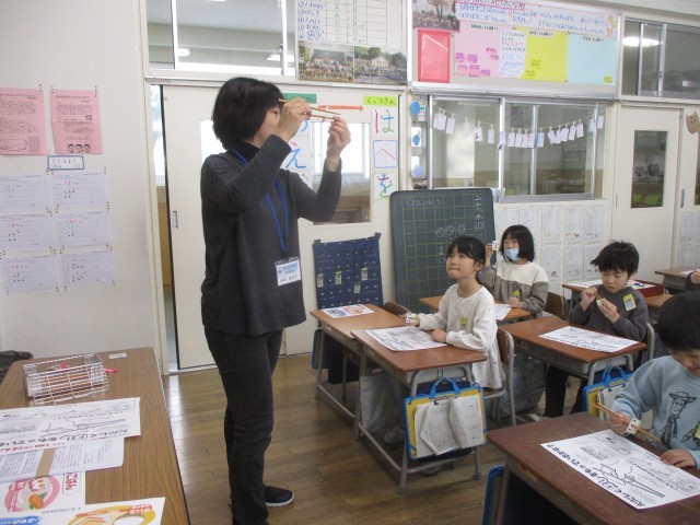 栄養士の先生から箸の正しい持ち方講座をしてもらいました。