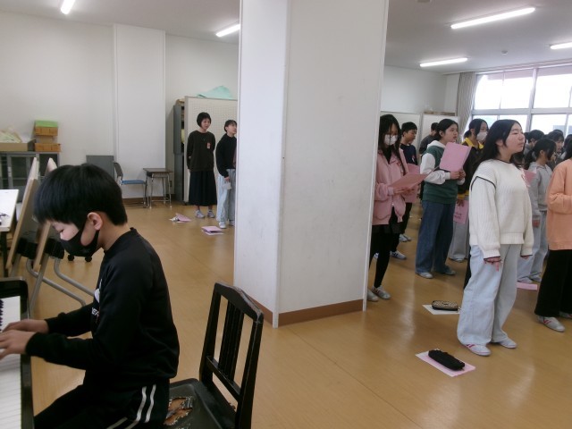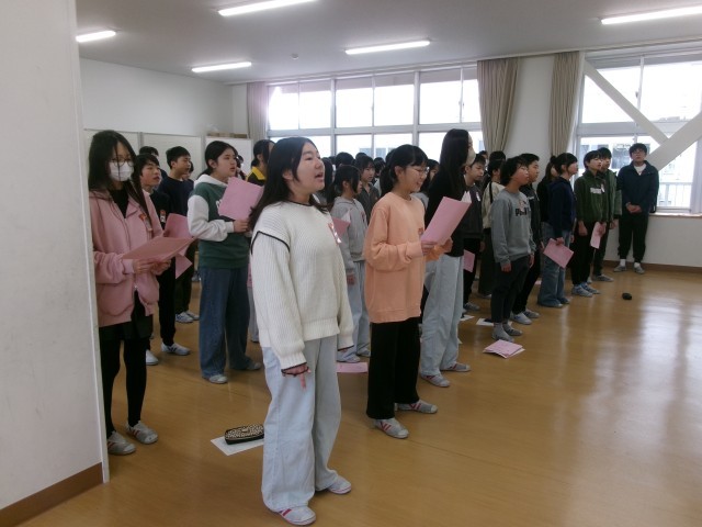 卒業式に向けて、歌の練習に取り組んでいます。歌詞の意味を考えながら、気持ちが伝わるように工夫して練習しています。