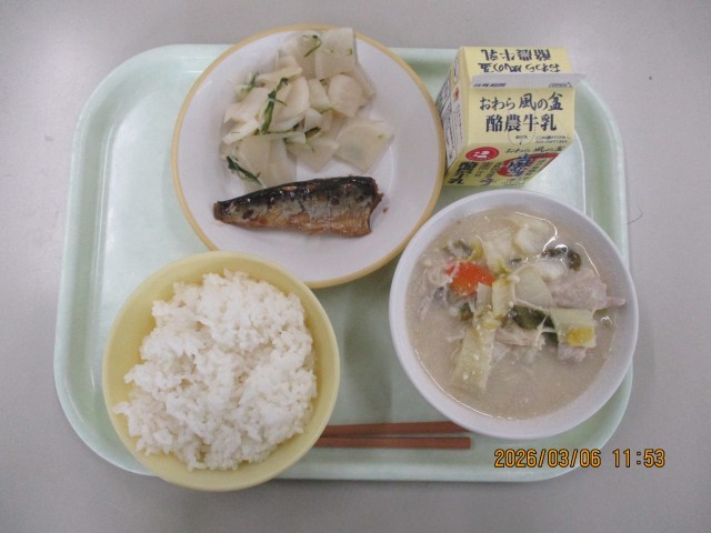 今日の献立は、ご飯  ごま豆乳鍋  いわしの土佐煮  甘酢和え  牛乳  でした。