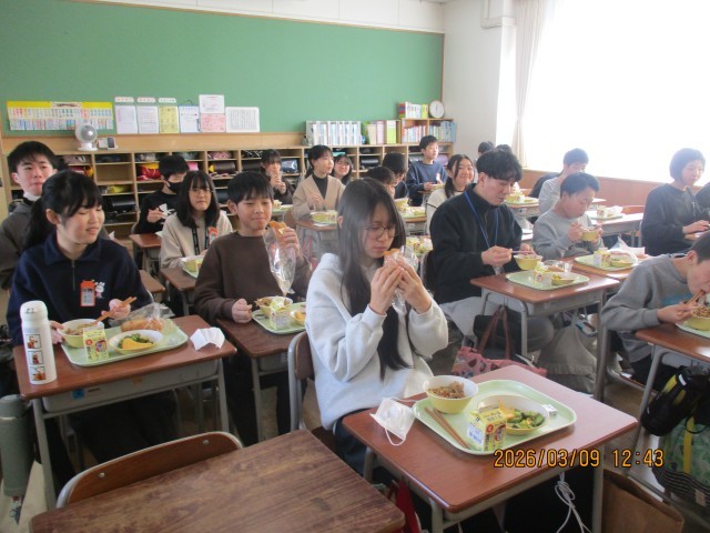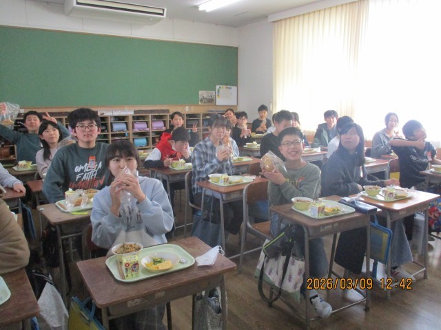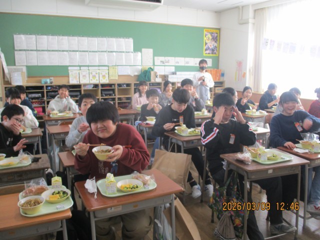 6年生にとって最後の揚げパンがメニューとなりました。あまりの美味しさに、つい、笑顔があふれます。調理員の方々、ありがとうございます。