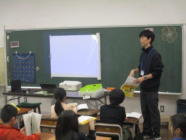 2年3組の3時間目は、国語科の学習でした。教科書のはじまりに描いてある絵を見ながら話し合っていました。