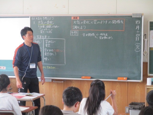 5年3組の5時間目は、理科の学習でした。天気の変化と雲の様子について考えていました。