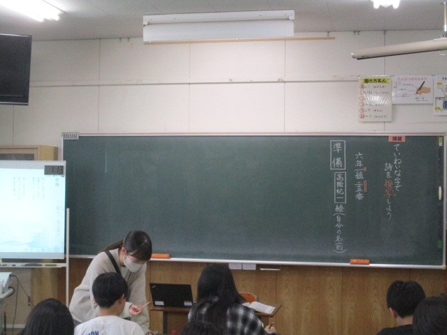 6年1組の5時間目は、国語科の学習でした。「準備」という詩を視写していました。