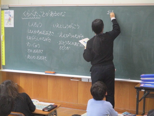 1年2組の1時間目は、算数科の学習でした。高さや大きさをくらべていました。