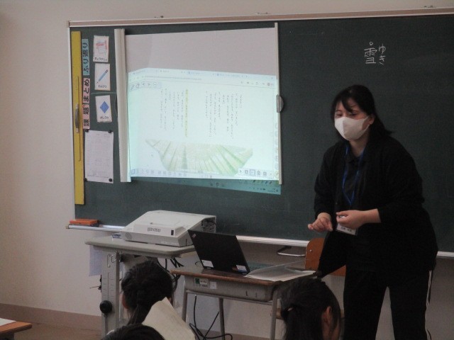 2年2組の1時間目は、国語科の学習でした。「ふきのとう」という詩を読んでいました。