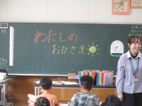 1年1組の1時間目は、図画工作科の学習でした。おひさまの絵を描いていました。