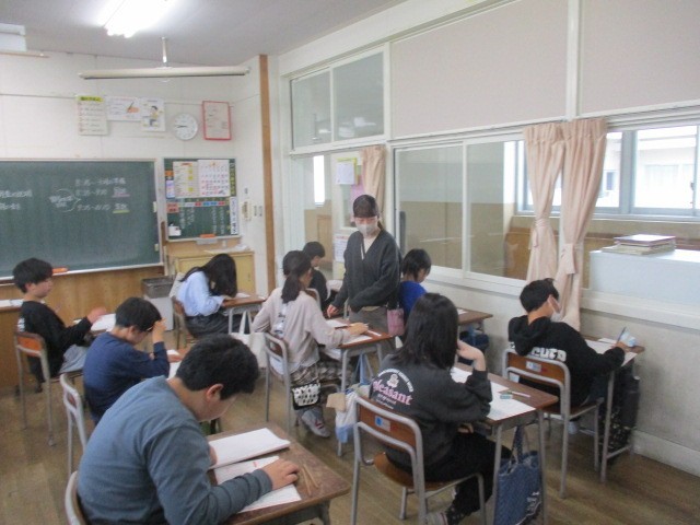 今日は、6年生の全国学力学習状況調査の日です。朝から問題に取り組んでいました。
