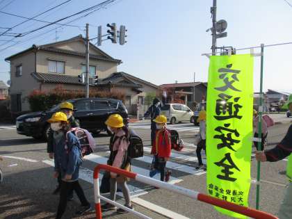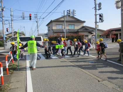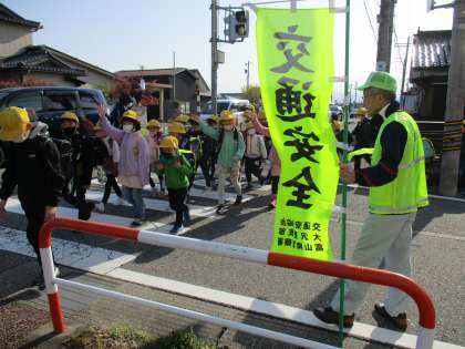 地域の方が、子供たちの安全を見守っておられます。