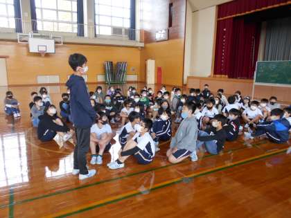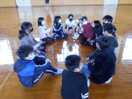子供たちは「克己」という言葉に込めた5年担任の思いを真剣に聞いていました。その後、楽しいゲームをしました。にこにこ笑顔がたくさん見られました。