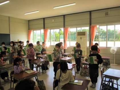 今日は、国語の時間に「たんぽぽ」を音読しました。良い姿勢で教科書を持ち、読む練習をしました。どの子も姿勢良く読む姿が、素敵でした。また、半分の人数で読み合い、上手に読む友達を見つけている人がたくさんいました。
