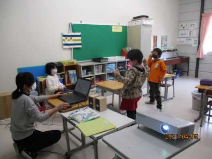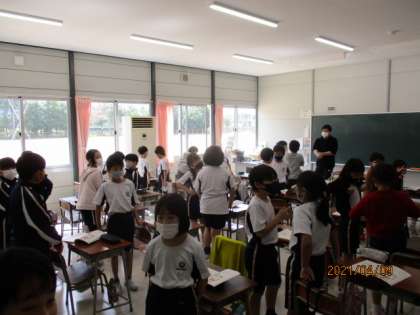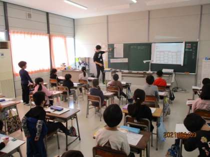 2年2組では算数「わかりやすくあらわそう」、4年2組では国語「こんなところが同じだね」、わかば級では国語「ふきのとう」の学習をしていました。