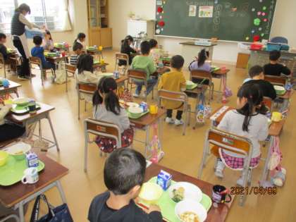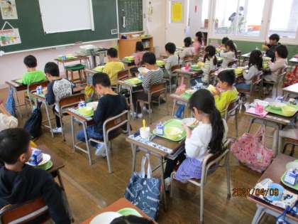 4月9日(金) 1年生 初めての給食
