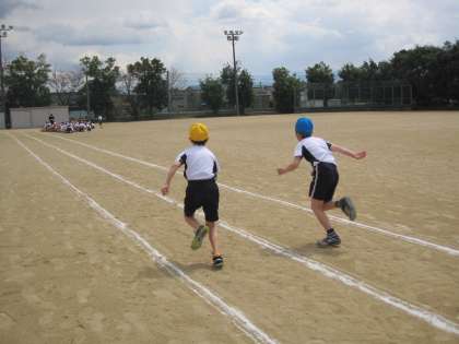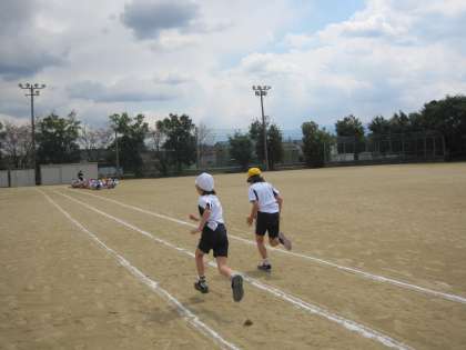 今日は、50mを走りました。天気もよく、子供達は気持ち良さそうに走っていました。