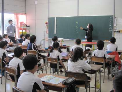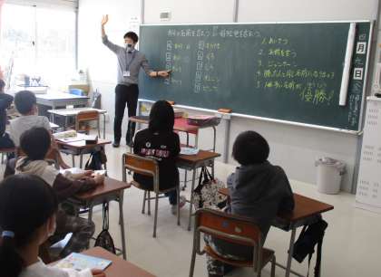外国語の学習では、外国語で自己紹介をしました。好きなものを友達に伝えました。笑顔で紹介していました。