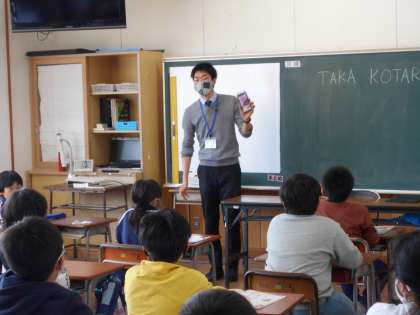 英語専科の先生の楽しい話やゲームで、子供たちは自然と英語を使うことができていました。