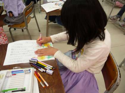 国語の時間に、たんぽぽの詩の視写をしました。丁寧な字で、正しい鉛筆の持ち方で書いている人がたくさんいました。