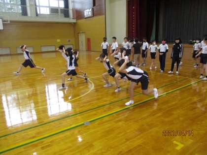 今日は、雨天だったため、体育館で短距離走の練習をしました。