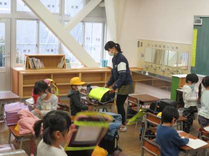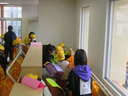 昨日、初めての雨の中の登校でした。1年生はカッパを脱いで、玄関にしまうのに一苦労。そのお手伝いを6年生がしています。