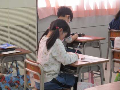 姿勢を正して、漢字を書いています。