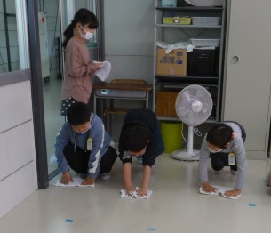 埃がたくさんたまるので、きれいになるように何度も雑巾がけをしています。