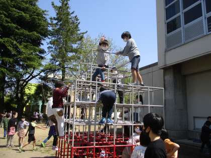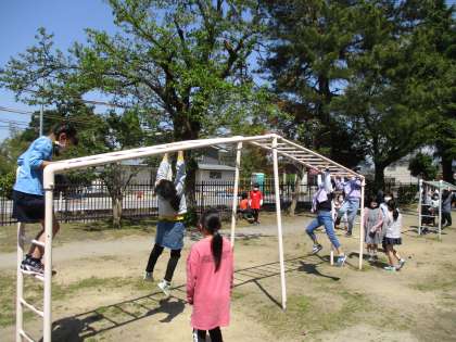 休み時間に、わんぱく広場に行きました。元気いっぱい身体を動かしています。