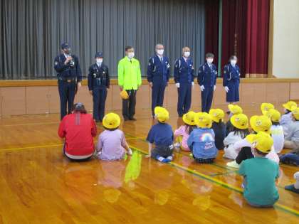 富山南警察署、交通安全協会、交通指導員の方を招聘し、1年生対象に「交通安全教室」を開きました。