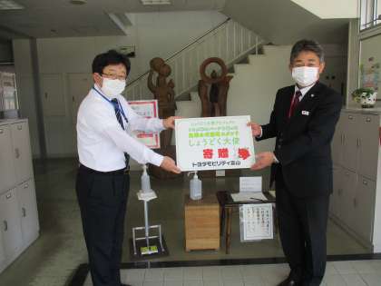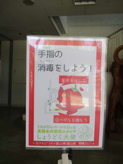 本日、トヨタモビリティ富山様から、足踏み式消毒スタンドのご恵贈がありました。