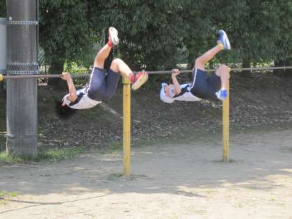 体育では、逆上がりの練習を頑張っています。