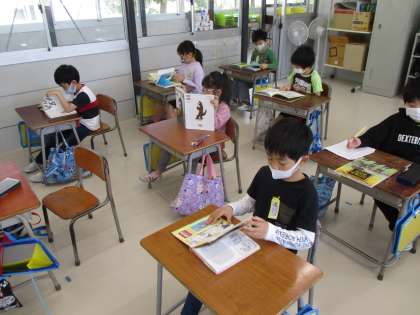 2年生は各クラス90冊ほど教室に置きました。みんな朝からたくさん読んでいます。