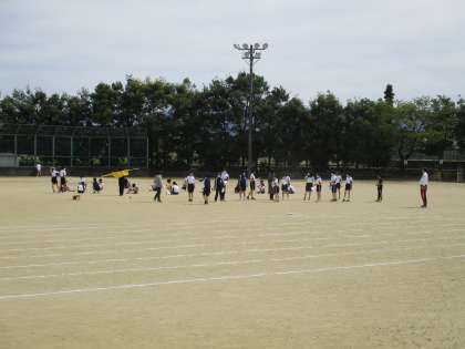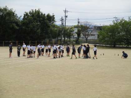グラウンドで、運動会(「大久保カップ2021」)の応援練習をしました。