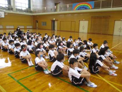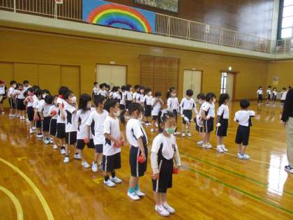 クラスごと、団ごとにすぐに並ぶことができるよう、並び方を練習しました。練習するごとに早く並べるようになりました。