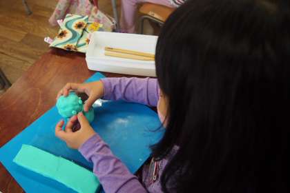 新しいねんどをよくこねて、いろいろな形にして楽しみました。