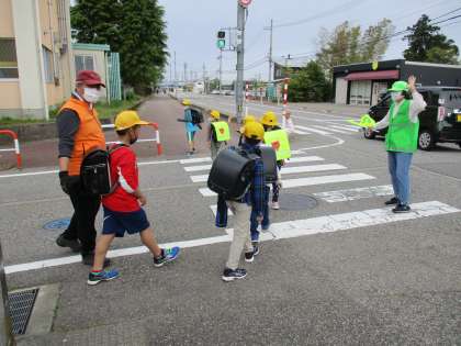 毎朝、見守り隊の方、民生児童委員の方が子供たちの安全を見守っておられます。