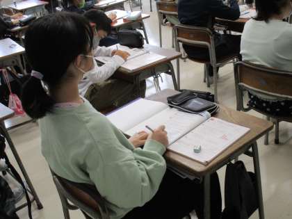 習熟度を考慮した個々の希望によりクラスを分け、一人一人の学習状況を確認しながら授業を進めています。子供たちからは、質問がしやすいと好評です。