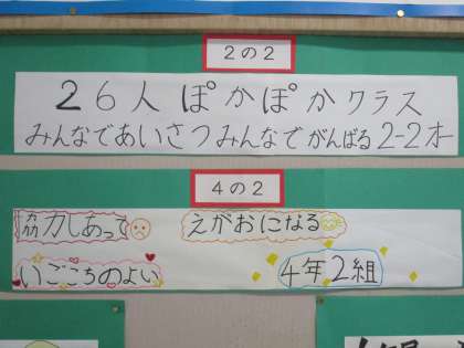 玄関前に掲示した学級目標です。