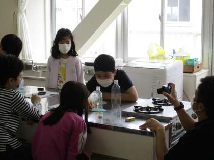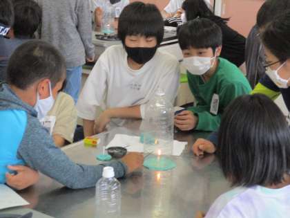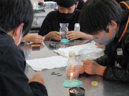 線香が燃えるとき、空気の動きを実験で確かめています。