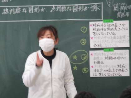 様々な多角形が点対称か、線対称か、考えています。