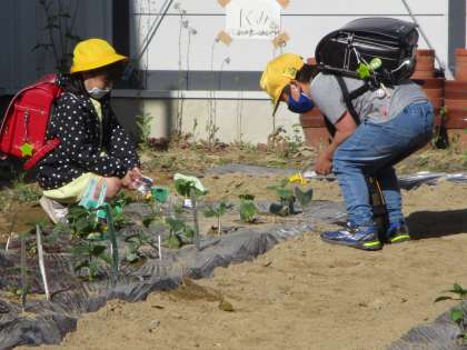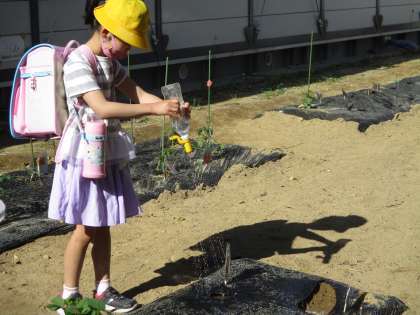 野菜を植えたので、朝、登校後に水やりをしています。
