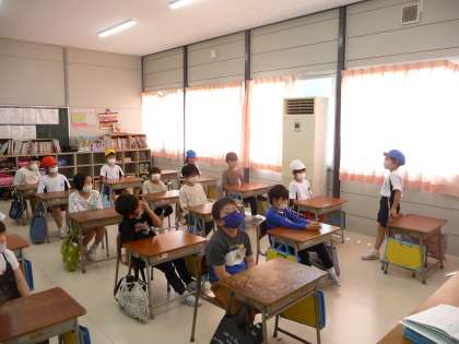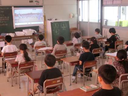 本日は運動会の予行練習が行われ、2年生は開会式、閉会式をリモートで行いました。