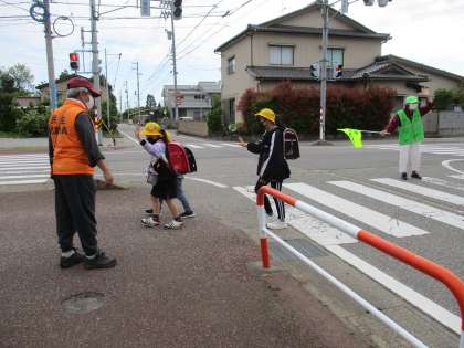 毎朝、見守り隊の方や民生児童委員の方が、子供たちの安全を見守ってくださっています。ありがとうございます。